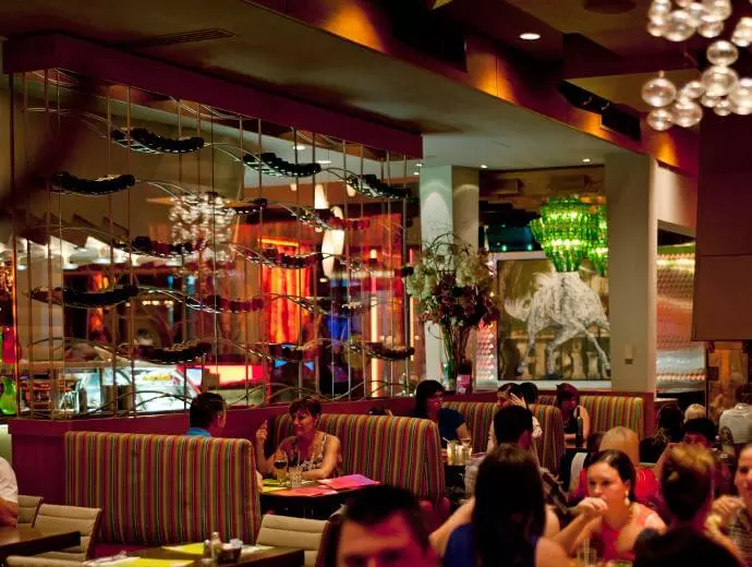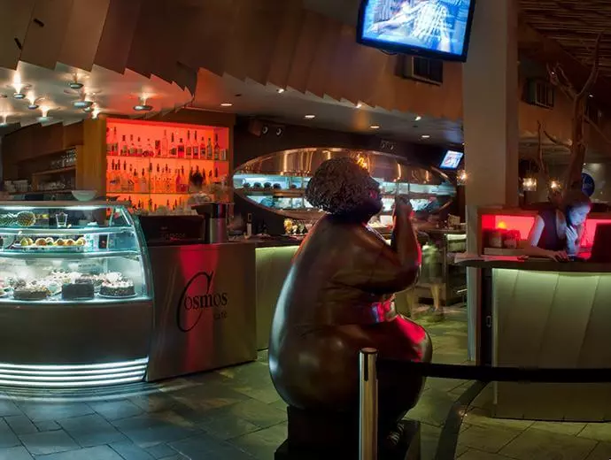 Proposant un éventail de 40 petits-déjeuners (servis de 7 h à 13 h en semaine et 14 h les week-ends), ainsi qu'un impressionnant choix de salades, burgers, grillades, pâtes, sandwichs et desserts maison, le menu du Cosmos en offre pour tous les goûts. Un menu du jour diversifié et abordable fait du Cosmos l'endroit par excellence pour dîner. Le décor éclectique et la musique envoûtante vous feront voyager le temps d'un repas!