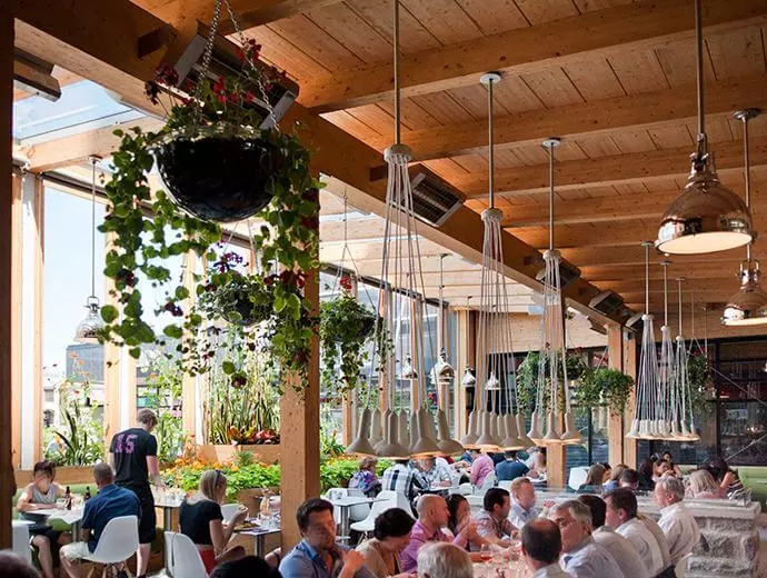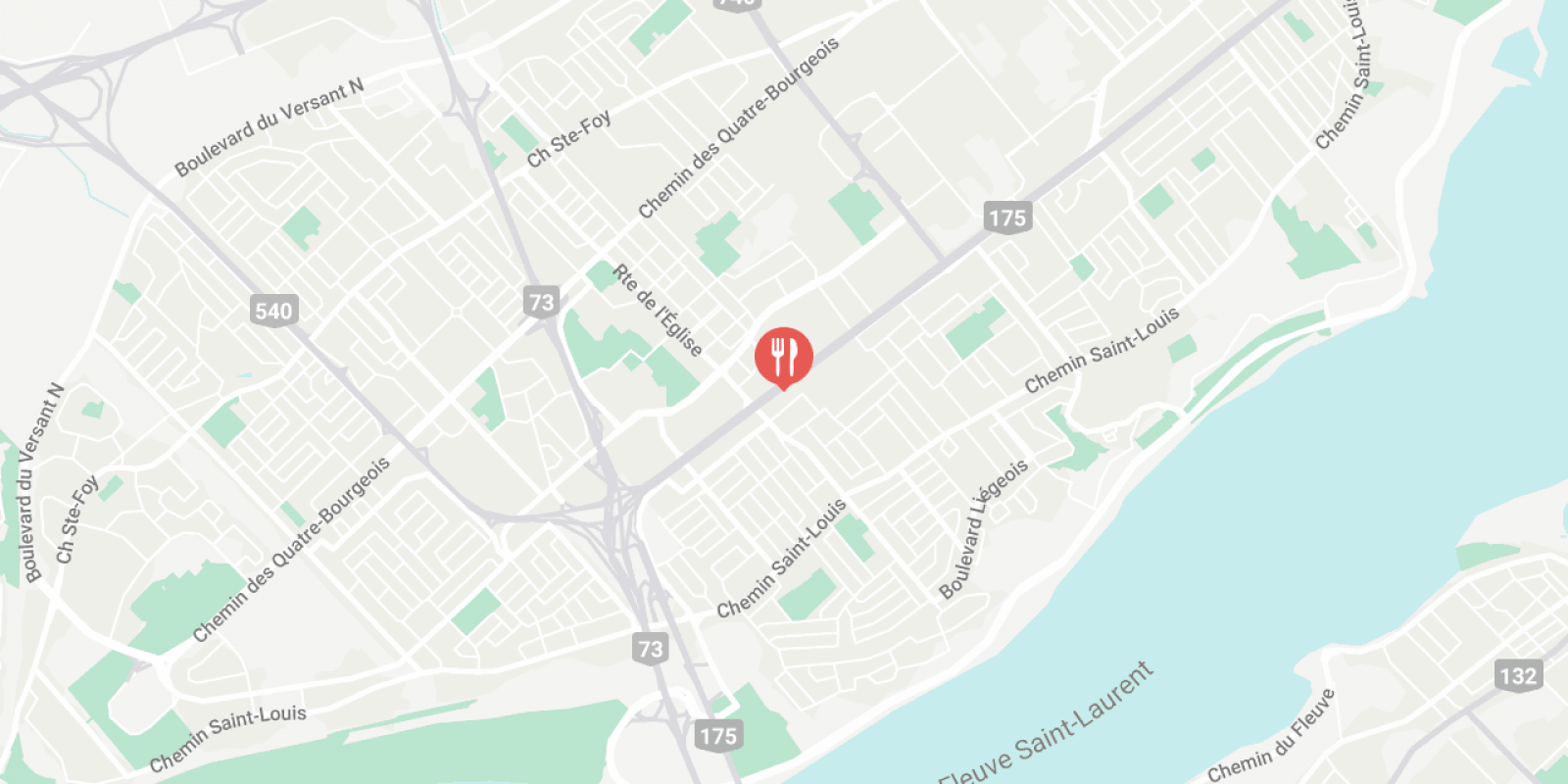 Type de cuisine par spécialités : Café et thé, Fruits de mer et poissons, Sandwichs, soupes et salades, Steak et côtes levées, Hamburgers et poutine, Bières, vins et spiritueux,