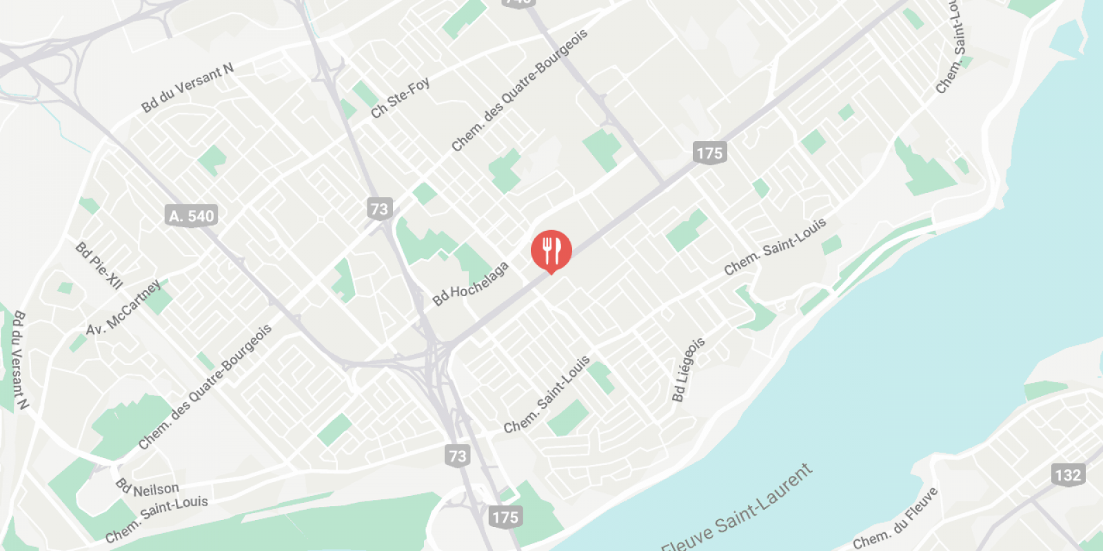 Type de cuisine par spécialités : Café et thé, Fruits de mer et poissons, Sandwichs, soupes et salades, Steak et côtes levées, Hamburgers et poutine, Bières, vins et spiritueux,