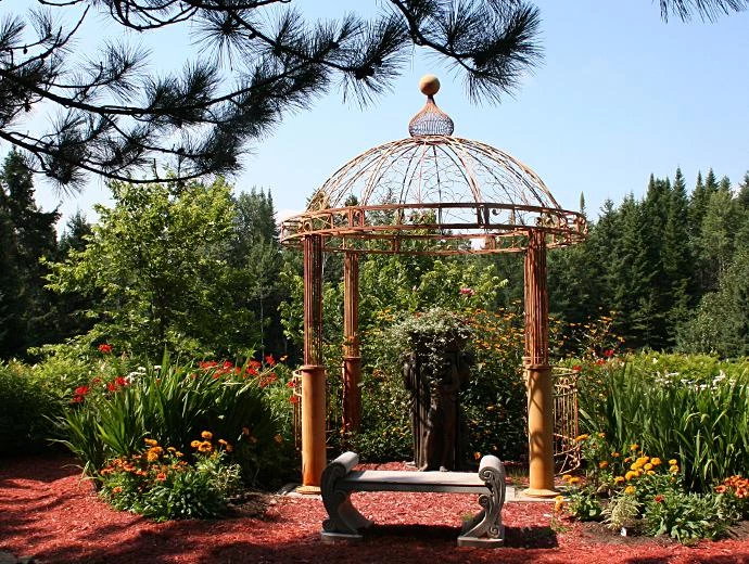 Deux kilomètres de sentiers mènent le visiteur d'un jardin thématique à l'autre. Des plantes inhabituelles, de la musique, une collection de statues en bronze créent une ambiance unique dans cet espace-jardin grandeur nature d'environ 30 000 mètres carrés. Chapiteaux, aires de pique-nique et installations sanitaires accessibles aux visiteurs. Conférences horticoles, ateliers (yoga, méditation, marche consciente. Groupes bienvenus sur réservation. Animaux de compagnie en laisse. Visites guidées sur demande. Pépinière ouverte au public, boutique-cadeau. Service de traiteur sur réservation.