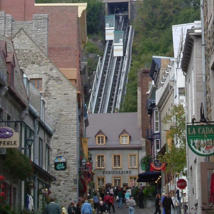 C'est la liaison directe entre la terrasse Dufferin, le quartier Petit-Champlain, la Place-Royale et le Vieux-Port. Il offre une vue panoramique du fleuve Saint-Laurent et de la Basse-Ville à un angle de 45 degrés. On y accède par la maison Louis-Jolliet, sise au 16, rue Petit-Champlain ou par la terrasse Dufferin située au pied du Fairmont Le Château Frontenac. Hauteur 85,5 m.