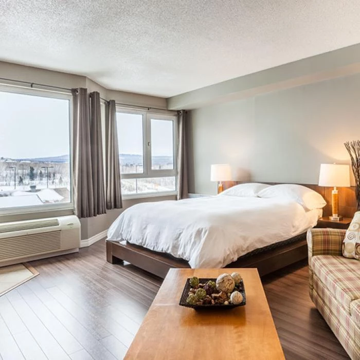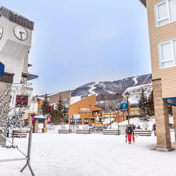 Seul complexe de condominiums quatre saisons au pied des pentes, le village vous offre une multitude de services à proximité. Condominiums tout confort pouvant loger de une à huit personnes. Chacun avec cuisinette fonctionnelle ou cuisine complète, air climatisé, stationnement intérieur chauffé, etc.