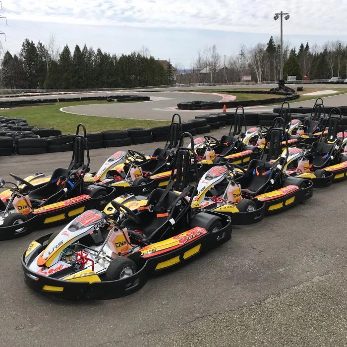 Les karts les plus performants sur le circuit et les plus excitants au Québec. Des karts puissants rapides et de réglage uniforme, K.C.R. Karting Château-Richer vous offre la course à l'état pur, à l'air pur et en toute sécurité. Seul ou en groupe, vous roulerez à plus de 80 km/h sur notre circuit extérieur homologué pour la course, moteur 9.5 c.v. Aussi karts à 2 places pour les tout-petits. 40 karts pour adultes et 15 karts pour enfants. Nouveauté : karting sur neige en hiver.