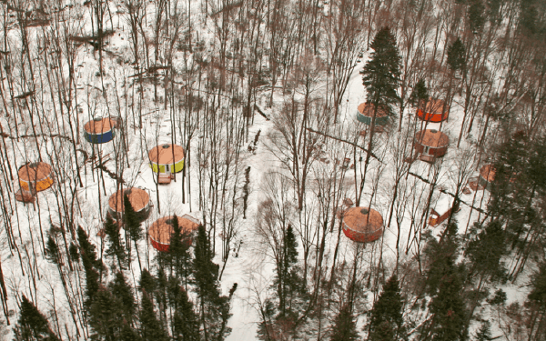 Activités 4 saisons : hébergement insolite en yourte de luxe (Village de yourtes Valcartier), restauration, bar, sentier de conditionnement physique en montagne.