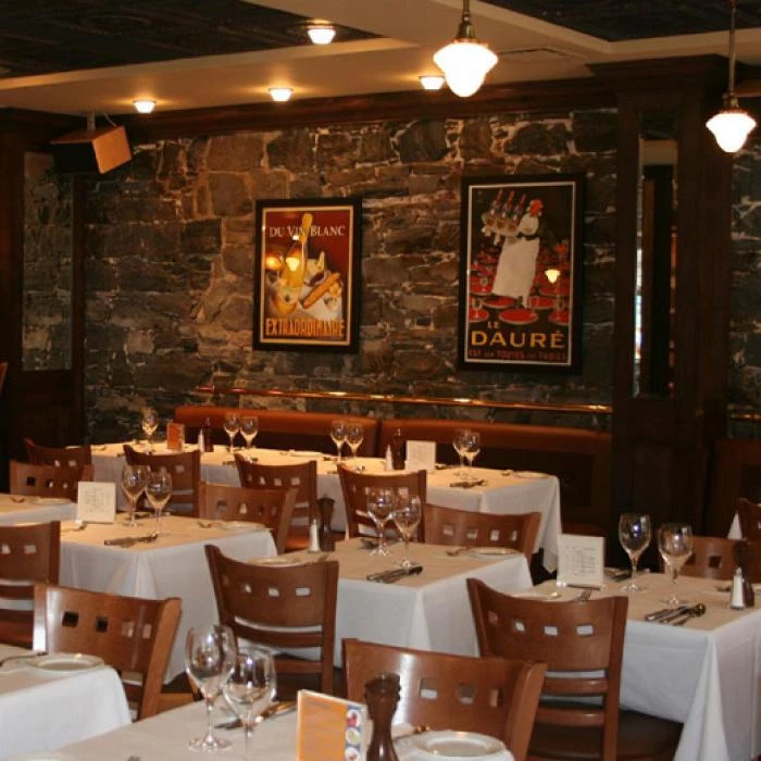Spécialité de steak frites avec sa sauce unique en Amérique du Nord, accompagné de pommes allumettes à la française cuites dans l'huile d'arachide, d'une salade aux noix et suivi des profiteroles au chocolat. Ambiance bistro français au cœur du Vieux-Québec. Salon disponible pour dîner ou souper conférence (diffusion sur écran 60 ' avec ordinateur portable), visionnement d'événements sportifs ou réunions familiales. Spécialité sans gluten et menu pour enfant disponible.