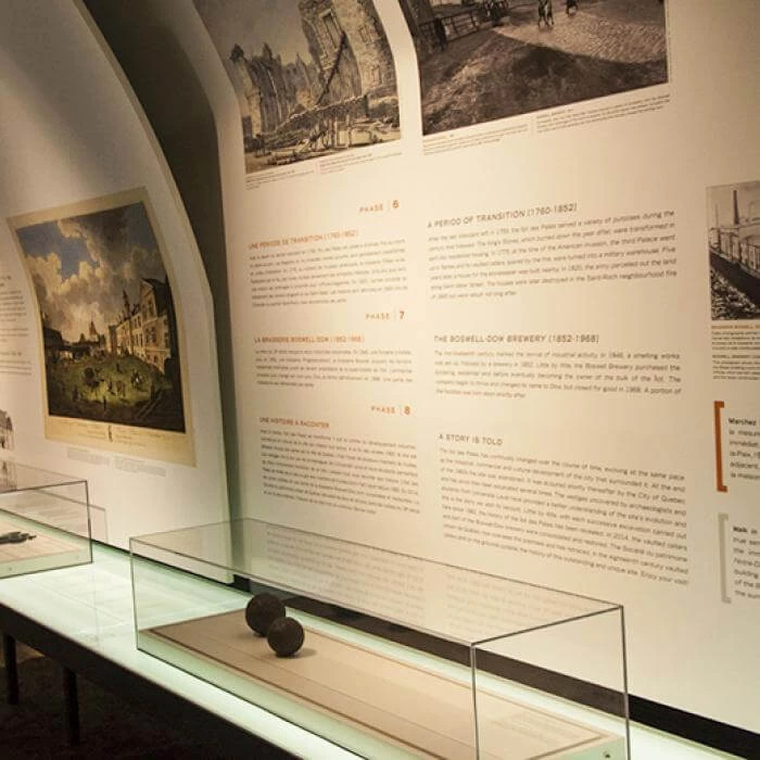 L'îlot des Palais, musée historique et archéologique, présente dans ses voûtes de 300 ans les expositions : Révélations, Ici on brassait la bière! et 100 ans de vie nocturne à Québec. Vivez l'histoire de l’occupation autochtone, aux palais de l’Intendant, jusqu'aux brasseries Talon et Boswell-Dow. GéoRallyes avec GPS dans le Vieux-Québec, rallyes familiaux et parcours sur téléphone : Incroyables histoires! et La vie nocturne à Québec avec dégustation.