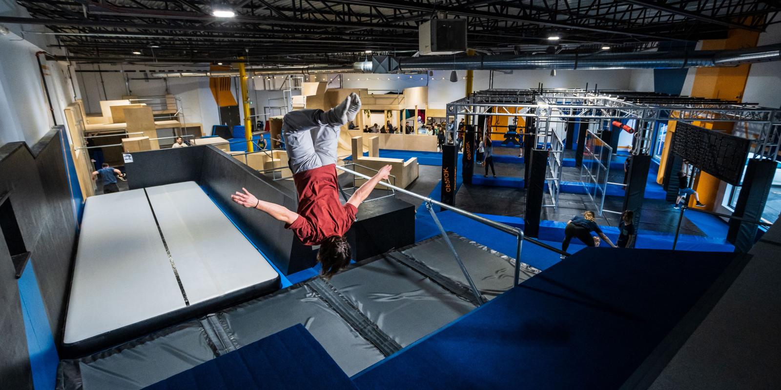 Obstak – Mouvement urbain est un centre unique à Québec où tu peux t’initier au Parkour et aux parcours Ninja dans un environnement intérieur sécuritaire, inclusif et stimulant. Que tu sois enfant, adulte ou athlète, viens grimper, sauter et relever des défis adaptés à ton niveau. Une activité intérieure idéale pour les familles, les jeunes et les amateurs d’aventure qui veulent bouger différemment et vivre une expérience hors du commun!