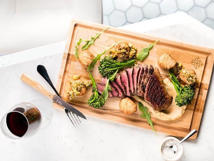 Ophelia, la destination Terre + Mer à Québec. Une expérience culinaire sans pareil, à travers un décor unique, comme jamais vu dans la vieille Capitale. Découvrez ce que la mer a de meilleur à offrir : homard, pétoncles, palourdes, crevettes, crabe d’Alaska, oursin et bien d'autres fruits de mer. Dégustez nos plats les plus raffinés, tel que notre bœuf Angus vieilli à sec pendant 55 jours, notre savoureuse pieuvre grillée ou encore notre plateau décadence pour deux. À travers un service exceptionnel, un menu savoureux et une ambiance remarquable, revisitez l’union Terre + Mer dans cette immersion que sera votre visite chez Ophelia.