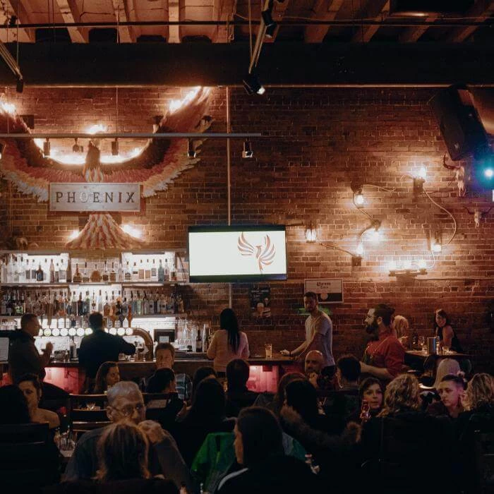 Le Phoenix offre une ambiance festive, que ce soit pour un diner d'affaires à prix abordable, ou un souper-spectacles les jeudis, vendredis ou samedis soirs, de 18 h 30 à 21 h 30, venez déguster un repas original, accompagné d'un bon verre de vin ou un cocktail maison. Dans un décor mythique, le service est courtois et professionnel. Programmation musicale à tous les soirs.