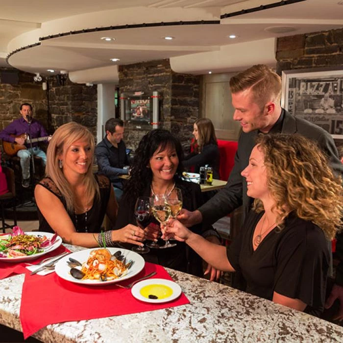 Superbe resto-bistro italien situé au coeur du Vieux-Québec, près des attractions touristiques et des principaux hôtels. Nous vous accueillons dans une maison historique datant de 1760 pour déguster des mets italiens tels que pizza cuite sur four à bois, pâtes italiennes, fruits de mer et autres, et cela dans une atmosphère chaleureuse et animée. Cave à vin exceptionnelle reconnue mondialement dans le prestigieux magazine Wine Spectator, plus de 4 000 bouteilles. Musique latino avec musicien sur place. Salons : 20 à 80 personnes.