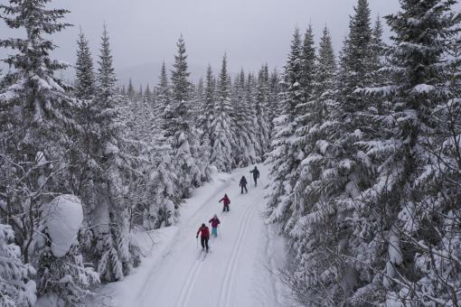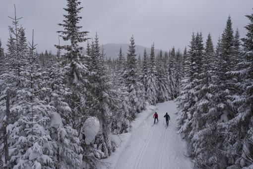 L’hiver, sillonnez paisiblement les sentiers en ski de fond ou en raquette. Cédez à l’envie irrésistible de conduire une puissante motoneige à travers la forêt enneigée… et dormez au chaud dans un hébergement insolite ou un chalet. Profitez d’un territoire montagneux culminant à 1151 m.