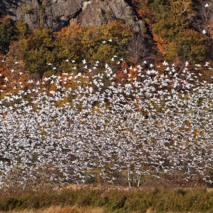 À 50 km du centre-ville, ce territoire unique et protégé est situé en marge du majestueux fleuve Saint-Laurent, des grands marais côtiers et de la montagne. Les grandes Oies des neiges s’y rassemblent par dizaines de milliers lors de leur migration printanière et automnale. À voir absolument !