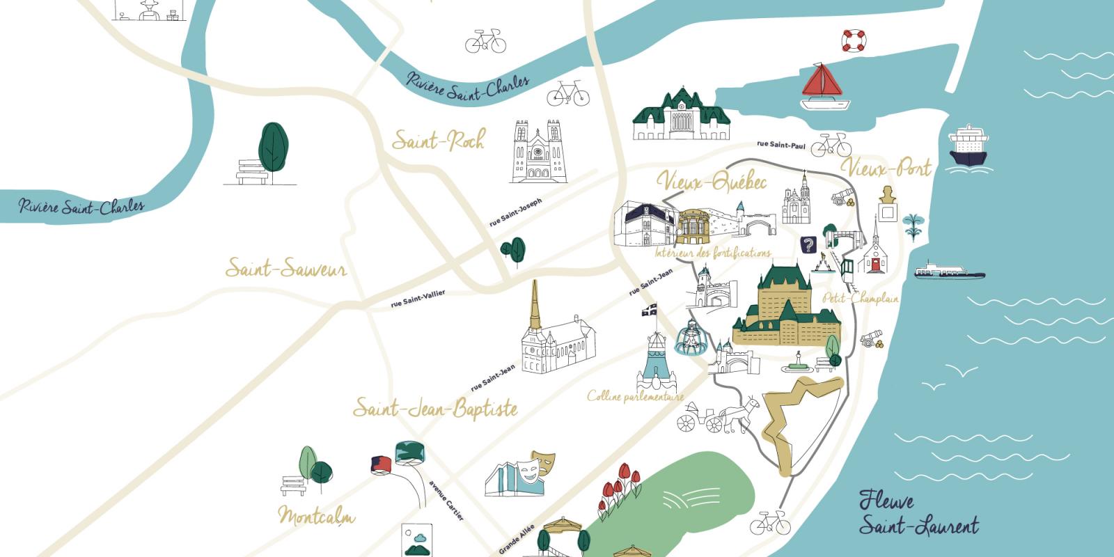 Il présente les meilleures adresses dans le Vieux-Québec et dans les quartiers Montcalm, Saint-Jean-Baptiste, Saint-Roch, Saint-Sauveur et Limoilou ainsi que des restaurants coups de coeur de résidents de Québec.