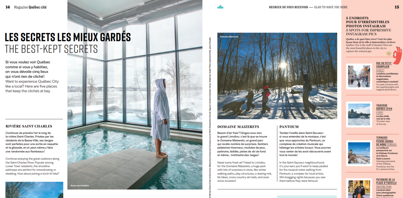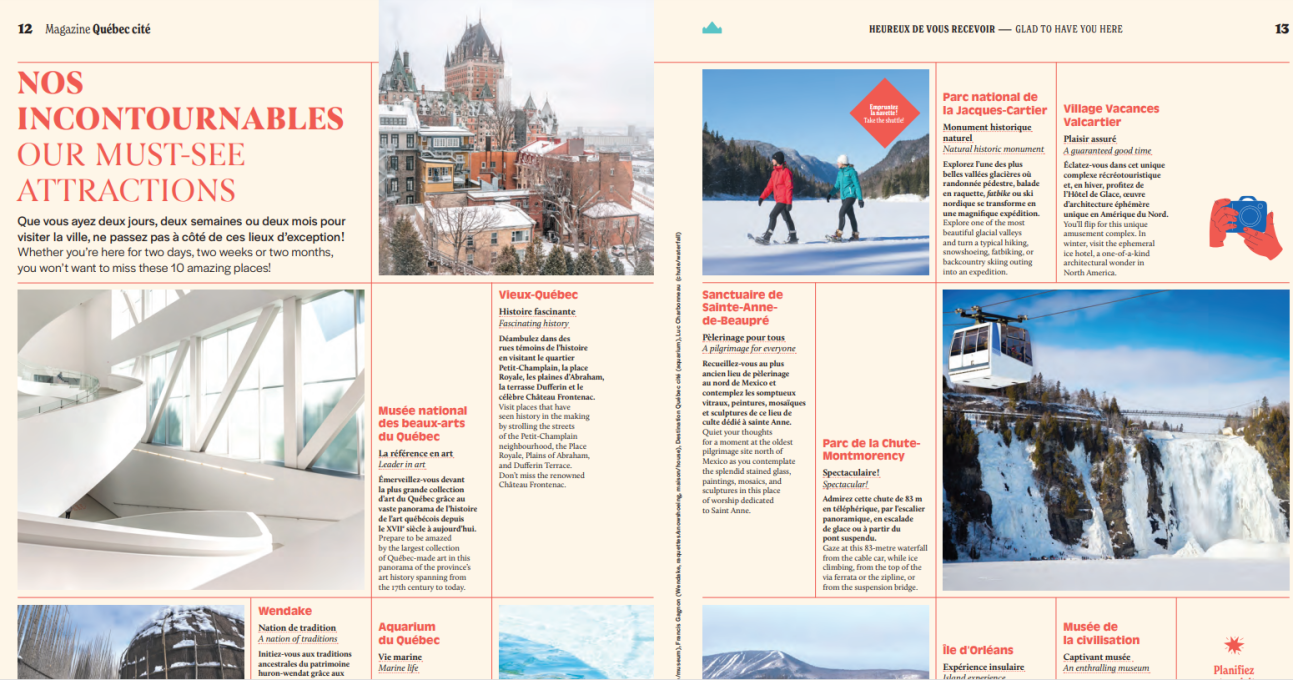 - Une publication au design moderne et dynamique qui met en valeur le caractère unique de la ville de Québec et de la région.