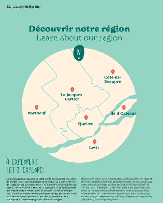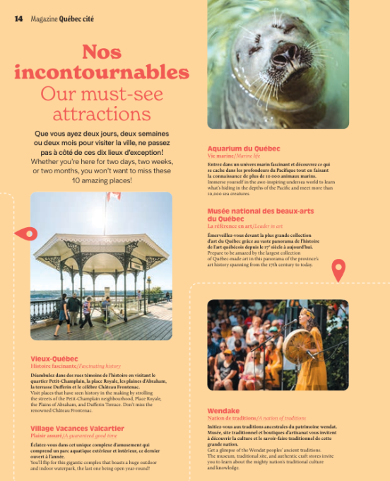 - Une publication au design moderne et dynamique qui met en valeur le caractère unique de la ville de Québec et de la région.