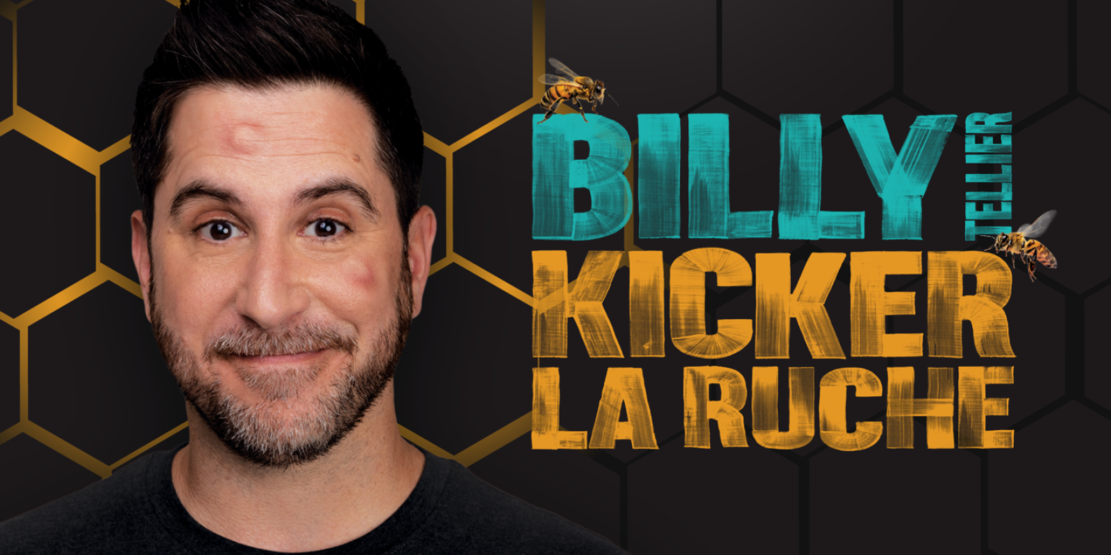 Fier du succès de sa dernière tournée avec plus de 50 000 billets vendus et près de 200 représentations, Billy Tellier présente son 3e one-man-show Kicker la ruche. Billy, qui a ce talent inouï de toucher la cible avec des sujets rassembleurs, présente cette fois-ci un spectacle encore plus punché et rythmé dans lequel il livre ses états d’âme sur sa peur de faire les mauvais choix... Toute sa vie, Billy a tenté de vivre en bonne petite abeille ouvrière, en faisant ce qu’on attendait de lui et en prenant les décisions les plus sages afin d’impacter le moins possible les gens qui l’entourent. Dans ce nouveau spectacle, il se demande s’il ne serait pas temps de remettre les choses en question, de brasser son quotidien, bref de kicker la ruche. Mais est-ce vraiment une bonne idée pour quelqu'un qui angoisse en choisissant entre crémeuse ou traditionnelle?