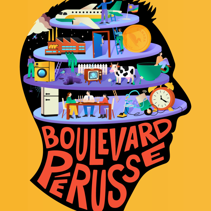 Avec Édith Cochrane, Martin Héroux, Erich Preach, Marie-Ève Trudel, David-Alexandre Després et Philippe Racine, Boulevard Pérusse plonge six artistes dans un chaos savamment orchestré, à l’image de l’écriture éclatée de François Pérusse.