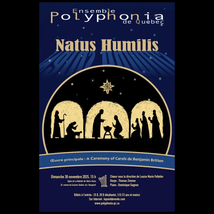 L’Ensemble Polyphonia de Québec présente son concert de Noël Natus Humilis, une expérience musicale empreinte de douceur et de profondeur, célébrant la naissance d’un enfant.