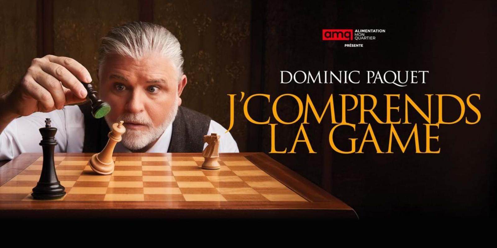 Après avoir vendu plus de 250 000 billets de son dernier spectacle, le populaire humoriste Dominic Paquet est de retour avec un tout nouveau one-man-show : J’comprends la game. Le 5e spectacle solo de Dominic se veut un gros clin d'œil à ces fameuses personnes qui, grâce à leur expérience de vie, sont certaines de comprendre des choses qui sont inaccessibles pour le commun des mortels… J’comprends la game est un laboratoire humoristique où la folie prend tout son sens alors que Dominic explore, examine et met en évidence toutes sortes de théories farfelues afin de donner des réponses à des questionnements que personne n’a jamais eus! Encore une fois, Dominic Paquet fait rire aux éclats, surprend et séduit par sa capacité à incarner des personnages uniques et à créer des expressions qui marqueront votre imaginaire!