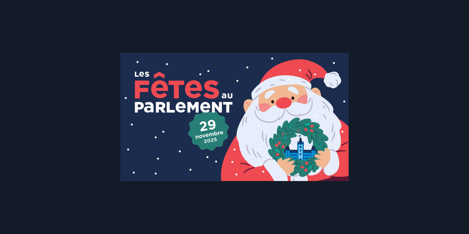 Venez célébrer les fêtes au parlement. Une occasion unique pour votre enfant de rencontrer le père Noël dans une ambiance festive et chaleureuse!