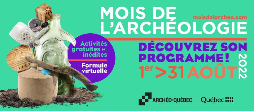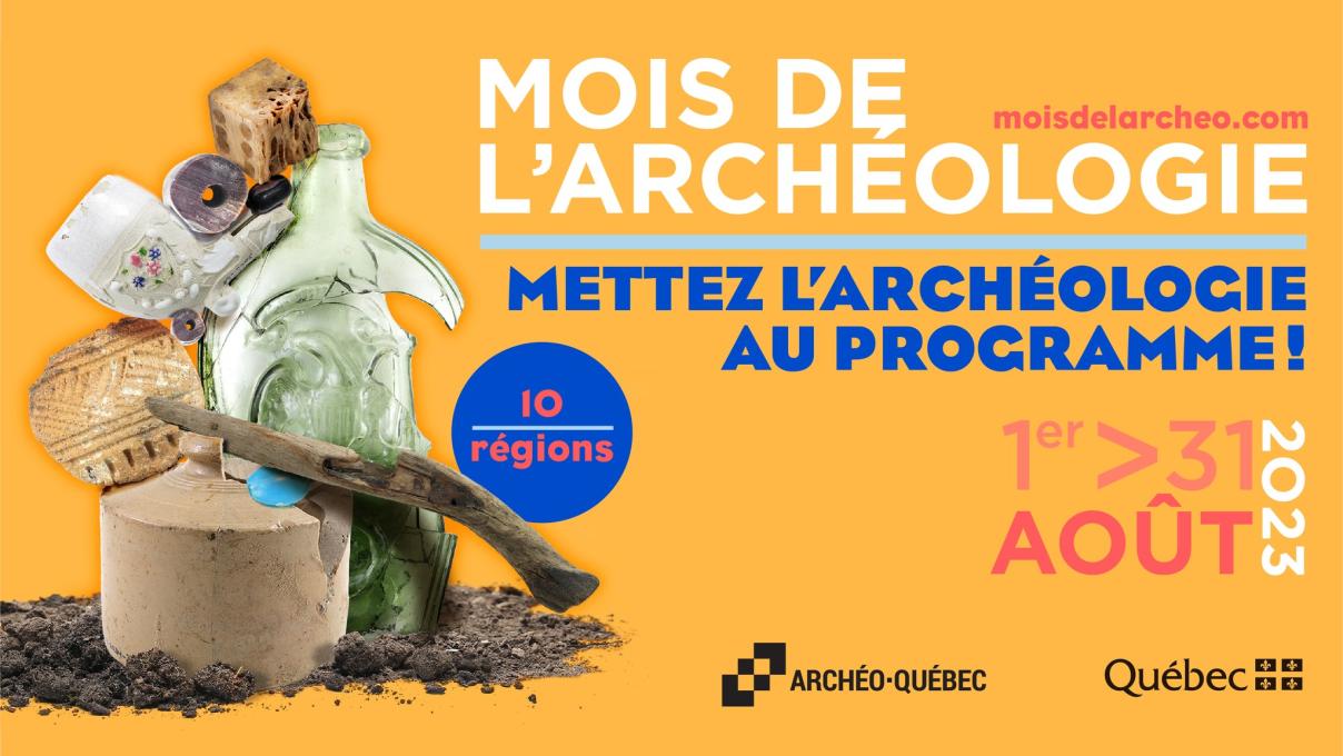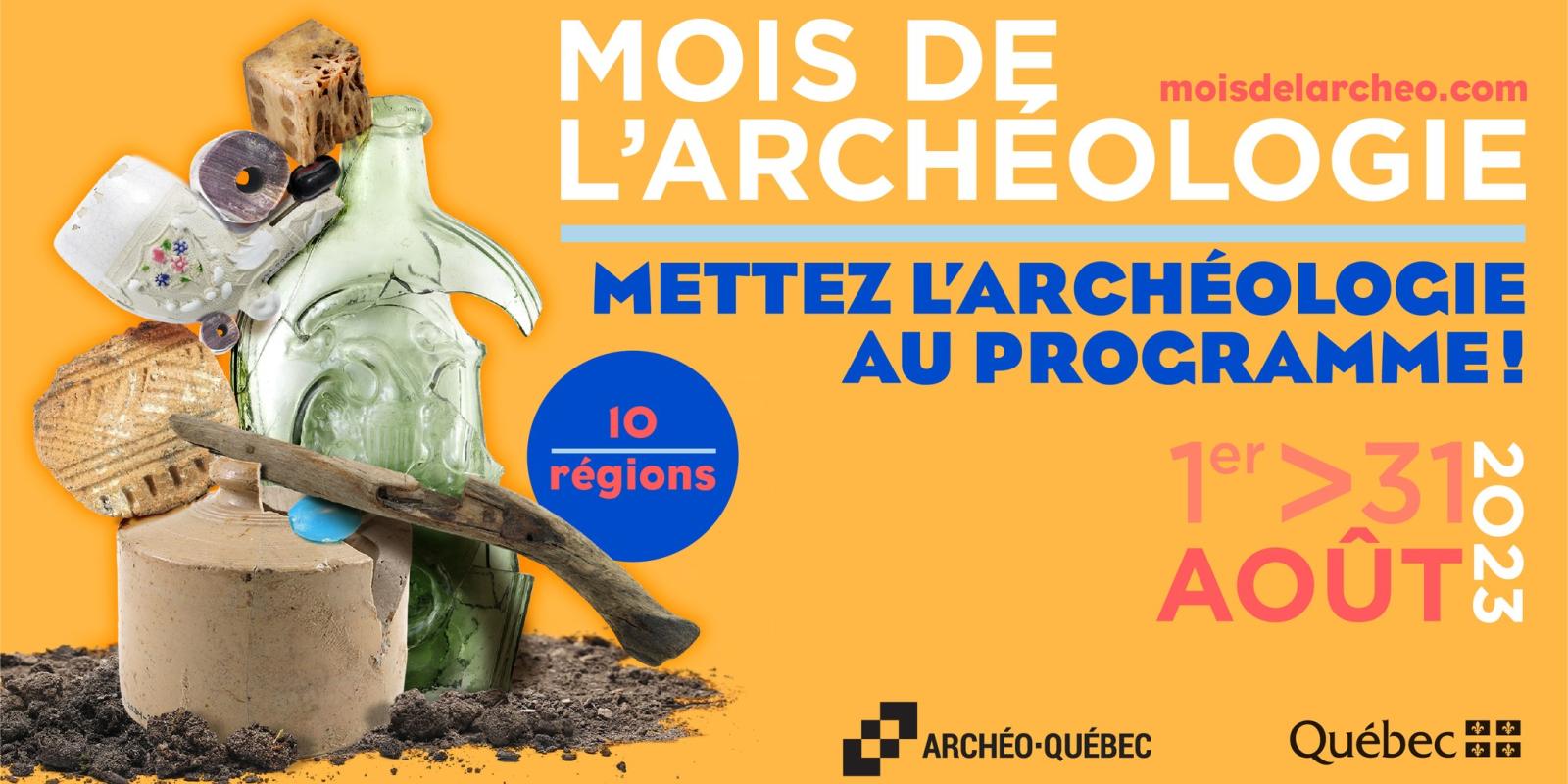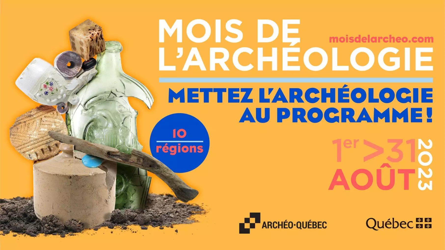 À l’occasion de la 21e édition du Mois de l'archéo, Archéo-Québec vous propose de découvrir le monde de l'archéologie sous toutes ses facettes. Une panoplie d'activités sera offerte par son Réseau pour que le métier d'archéologue n'ait plus de secret pour vous ! Le Mois de l’archéologie rassemble des archéologues, des municipalités, des sites historiques, des musées, et d'autres lieux de diffusion, afin de vous faire découvrir une programmation enrichissante et diversifiée.
