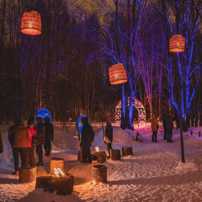 Célébrez la relâche de façon originale! D'une longueur de 1,2 km, ce parcours en forêt transporte les visiteurs dans un univers féérique alliant la nature et la technologie avec, comme toile de fond, la riche histoire de la Nation huronne-wendat.