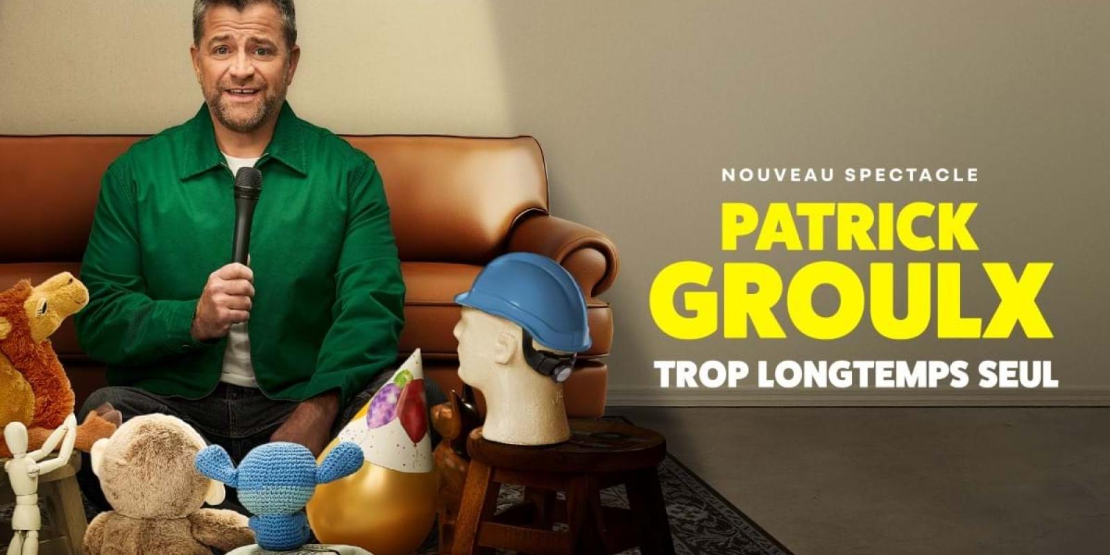 Patrick Groulx est enfin de retour sur scène pour présenter son 5e one-man-show : Trop longtemps seul. Dans ce show qui lui ressemble à 100%, il renoue avec un style l'humour qui rappelle parfois le côté décalé et éclaté qu’il avait à l’époque du Groulx luxe. Toujours aussi franc et irrévérencieux, Patrick embrasse maintenant l’idée de vieillir, alors qu’il ne s’est jamais senti aussi bien, aussi jeune et aussi libre que dans la cinquantaine.