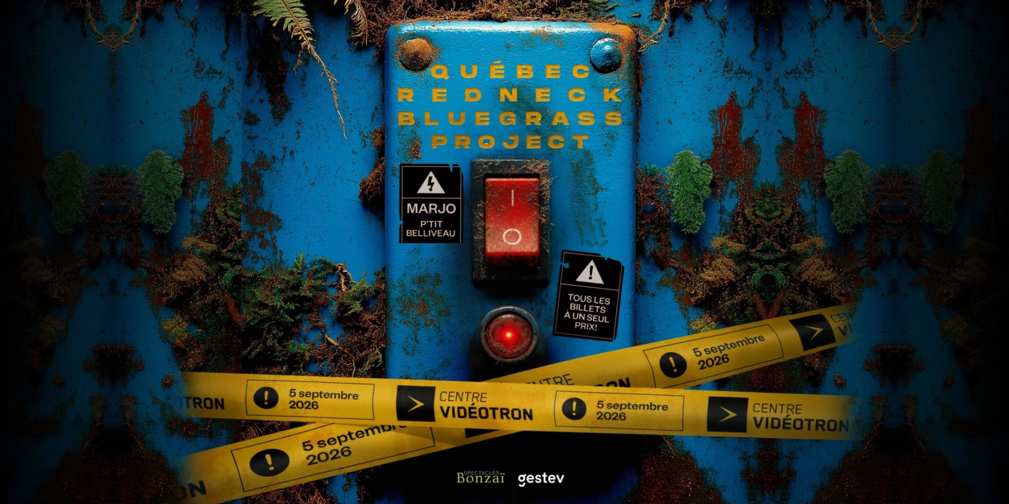 Habitué des grandes scènes de festivals au Québec et ailleurs, le quatuor du Saguenay–Lac-Saint-Jean Québec Redneck Bluegrass Project (QRBP) marque une rare incursion en salle, alors qu’il foulera la scène du Centre Vidéotron pour la toute première fois, avec Marjo et P’tit Belliveau en ouverture. La musique de QRBP appelant à célébrer et, surtout, à se réunir, ce grand rassemblement prendra des allures de fête collective, portée par des hymnes vibrants à scander en chœur et par les textes colorés de JP « Le Pad » Tremblay, qui décrivent avec humour et transparence une vie atypique bien remplie. Les membres du groupe transporteront sur scène mandoline, violon, guitare et contrebasse pour présenter les chansons de leur nouvel opus, dont la sortie est prévue pour la fin du printemps 2026, comme leurs classiques incontournables.