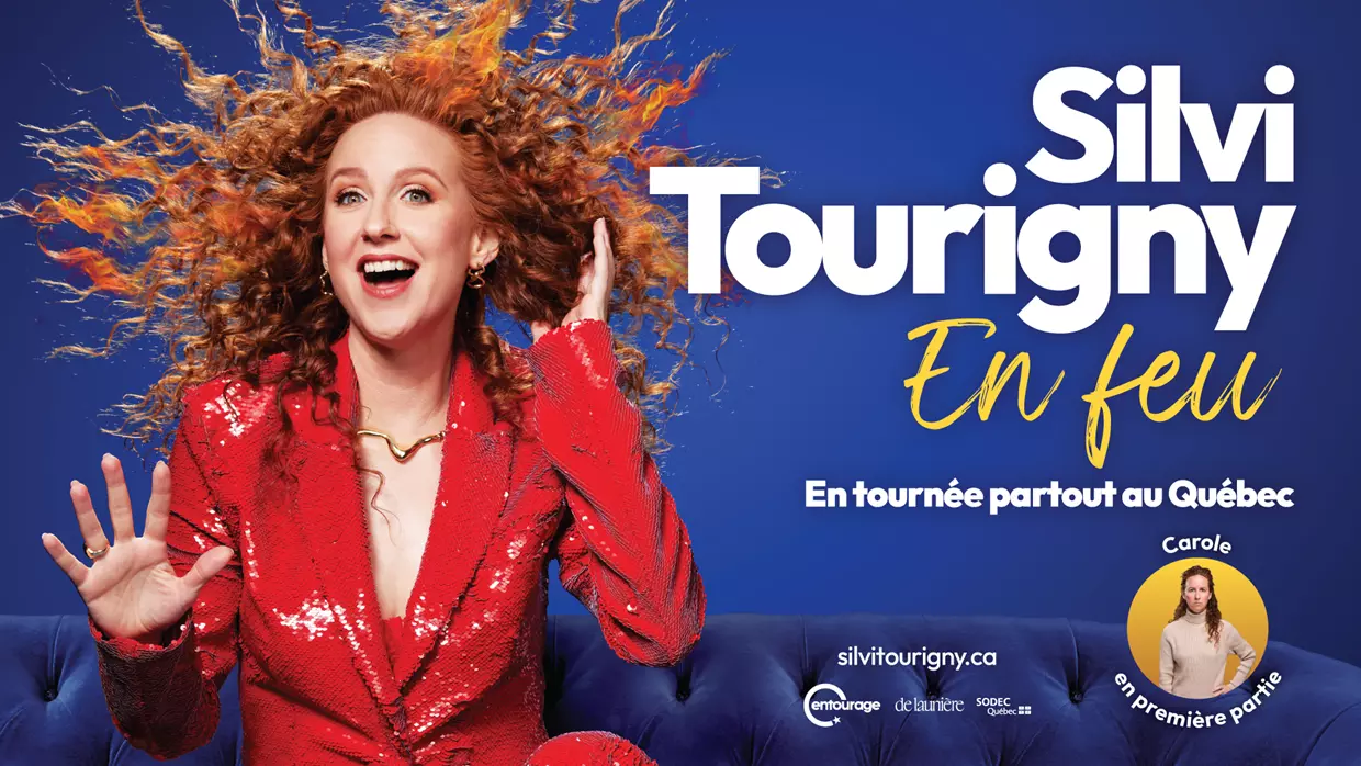 L’humoriste Silvi Tourigny s'apprête à brûler les planches avec son premier spectacle solo, En feu! Ce one-woman-show est une plongée hilarante dans son vécu, mais surtout dans ses envies, celles d’une femme libérée et assumée. Au cours des dernières années, il s'en est passé des choses dans sa vie : une maison, un enfant, une moto, une séparation, une autre maison, des rencontres douteuses, une autre relation et c’est sans compter sa passion beaucoup trop intense pour les animaux! Silvi et sa fidèle acolyte, Carole, sont plus enflammées que jamais et prêtes à non seulement vous faire rire, mais également à vous donner le goût de danser! Avec son naturel désarmant, la rouquine fait souffler un vent d'énergie et d'humour qui séduit à grands éclats de rire.