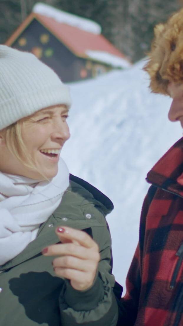 Un couple déguste un repas gastronomique au restaurant Chez Muffy, devant un feu de foyer.