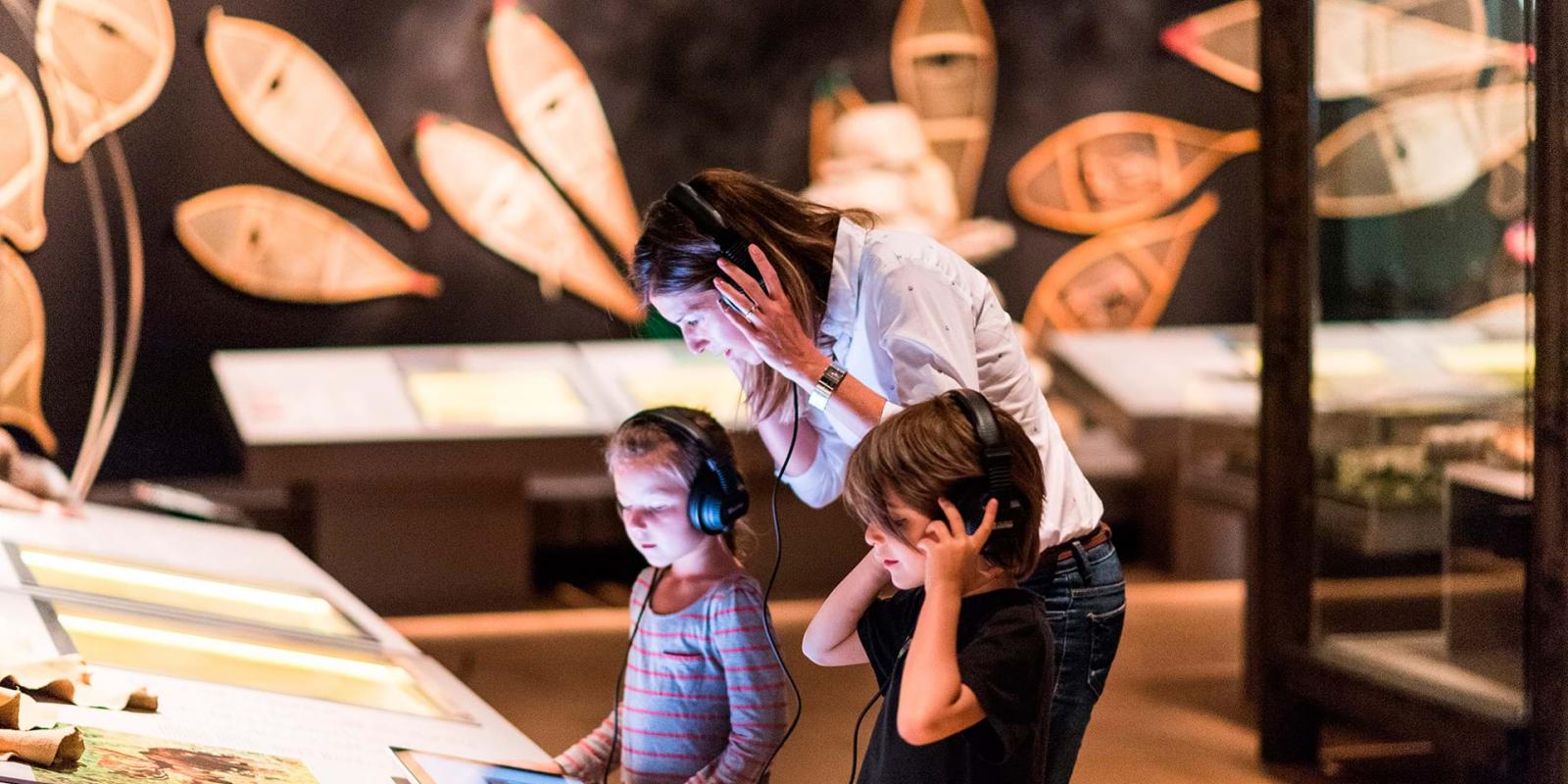 • Une fillette regarde à travers une vitrine dans une exposition au Musée national des beaux-arts du Québec.