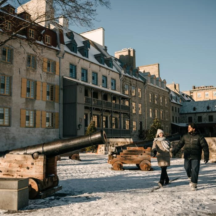 Animée été comme hiver, profitez d’une vue imprenable sur le fleuve Saint-Laurent et le Château Frontenac lors d’une promenade sur l’immense terrasse Dufferin. Nommée ainsi en l’honneur de Lord Dufferin, un gouverneur général du Canada amoureux de la ville de Québec, la terrasse est si appréciée qu’elle a été agrandie à deux reprises au cours de son histoire. Faites d’une pierre deux coups en visitant les vestiges des Forts-et-Châteaux-Saint-Louis qui se trouvent en dessous de ce lieu iconique.