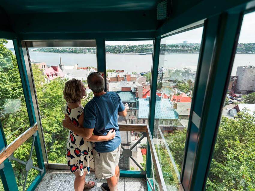 Empruntez ensuite le funiculaire pour remonter en Haute-Ville tout en profitant de la vue panoramique sur le fleuve Saint-Laurent et la Basse-Ville.
