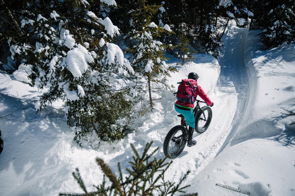 Les amateurs de vélo de montagne pourront se délier les jambes dans un réseau de près de 350 kilomètres de sentiers singletracks unique dans l’est du Canada. Plusieurs sentiers faciles mais enivrants sont parfaits pour s’initier à cette activité en forêt. En hiver, les amateurs de vélo peuvent garder la forme grâce aux nombreux sentiers damés pour les vélos d'hiver (fatbikes).