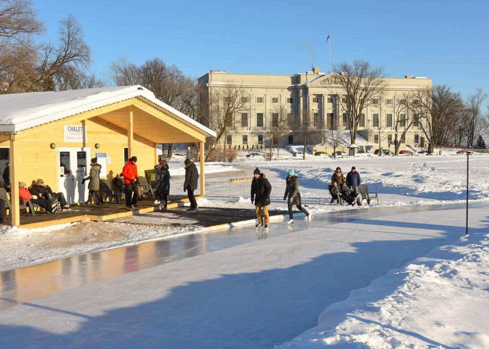 - Ambiance : Niché au cœur d’un site historique emblématique, l'anneau de glace réfrigérée des plaines d'Abraham offre une expérience unique, avec en toile de fond la majestueuse façade du Musée national des beaux-arts du Québec.