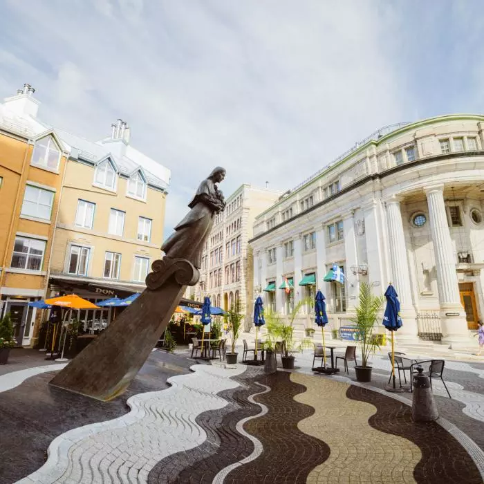 Cette magnifique place publique commémore le 50e anniversaire de l'Organisation des Nations Unies pour l'alimentation et l'agriculture, fondée à Québec en 1945.