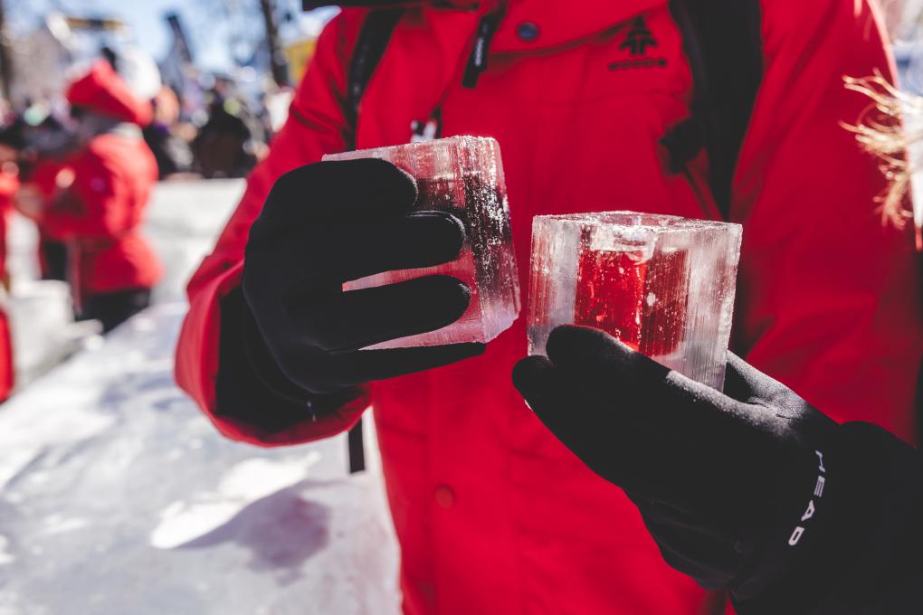 Quatre bars de glace vous attendent pour savourer le meilleur des produits du Québec : le Bar de glace SAQ avec son DJ sur une plateforme surélevée, le Bar de glace Coureur des Bois, le Bar de glace Atypique et le Bar de glace Loto-Québec. On déguste sa boisson favorite dans un verre de glace pour une expérience complète.