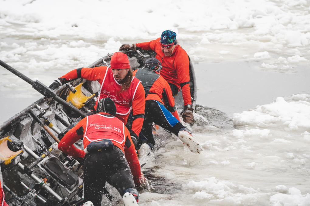 Sur le fleuve Saint-Laurent gelé, des équipes de canotières et de canotiers s’affrontent à l’occasion de la Course en canot gouvernement du Québec à travers les éclats de banquise le 8 février. Pour être plus près de l’action, on peut y assister à partir du bateau de la Traverse Québec-Lévis en expérience privilège.