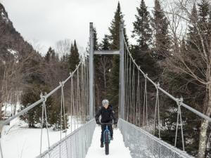 Réputé pour le ski de fond et le vélo de montagne, le fatbike était un ajout naturel à l’offre de service des Sentiers du Moulin. Développé sur plus de 40 kilomètres, le niveau de difficulté des sentiers représente un bon défi. Bien qu’un débutant y trouvera son compte, ces sentiers conviennent probablement mieux aux cyclistes intermédiaires et avancés.