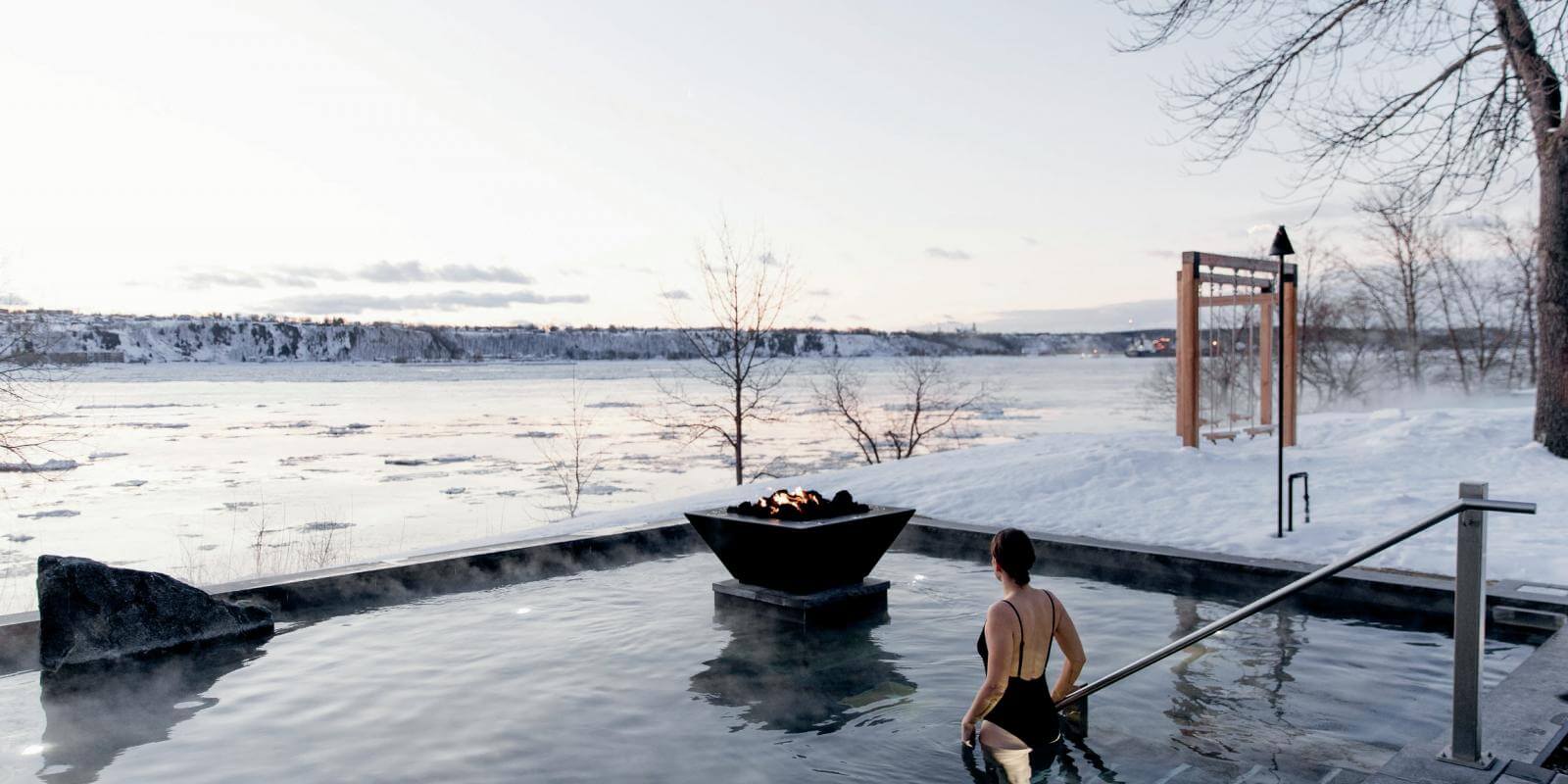 Faisant écho au cachet du Vieux-Québec, le Strøm spa nordique du Vieux-Québec se prête à l’élégance intemporelle de la saison et offre un véritable spectacle de couleurs, entre celles des arbres qui longent les berges et le bleu du fleuve. Relaxez et admirez les beautés de la belle saison, allongé sur une chaise longue ou profitant de la fraîcheur de la piscine infinie.