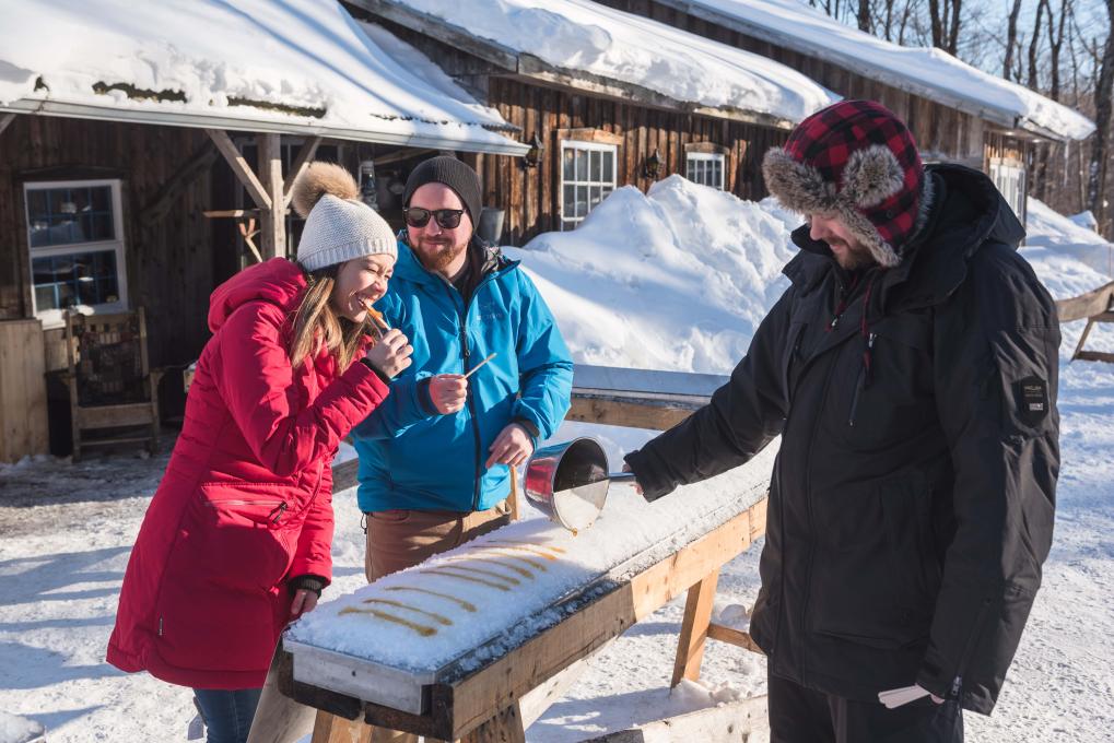 Difficile de trouver mieux pour saluer l’arrivée du printemps! Dans une grande cabane en bois, les familles se rassemblent autour de longues tables nappées de carreaux pour partager un copieux repas dégoulinant de sirop d’érable, à la mode québécoise d’antan.