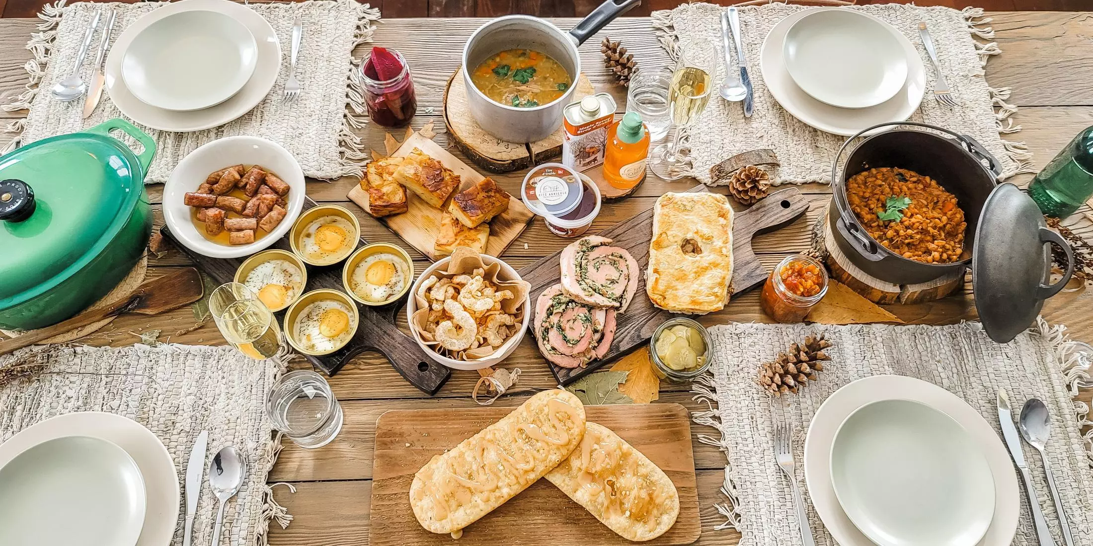 On sort la nappe à carreaux! Les traditions sont préservées avec le coffret des sucres de l’Érablière Le Chemin du Roy. Tout a été pensé dans les détails, même les oreilles de crisse, le ketchup aux fruits et la tire d’érable sont emballés, sans oublier les mets copieux, afin de revivre à la maison les tablées de cabane à sucre d’antan.