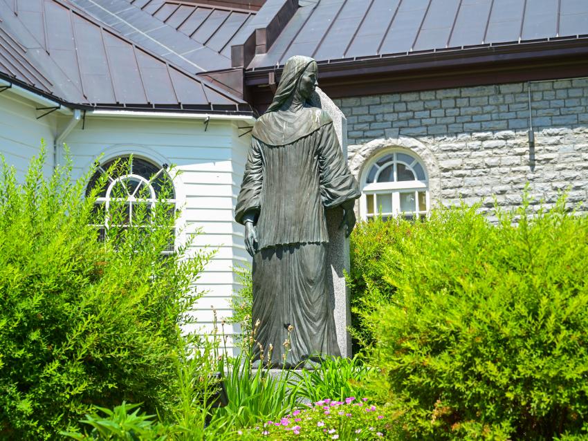Emplacement : 32, rue CharlevoixEn 1648, Marie-Catherine-de-Saint-Augustin quitte sa Normandie natale pour évangéliser en Nouvelle-France. Elle intègre la communauté des Augustines de l’Hôtel-Dieu, se vouant dès lors au soin des pauvres et des malades. Cette statue la représente debout, en toute simplicité, adossée à un élément d’architecture rappelant le monastère de Bayeux d’où elle est partie à l’âge de 16 ans.