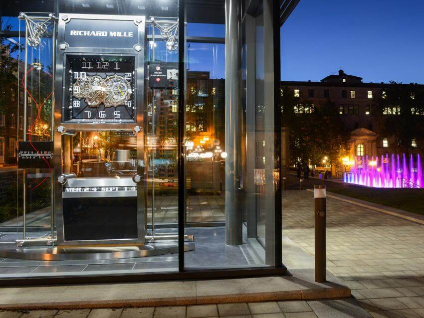 Cette horloge, d’une taille de 3,5 mètres et d’un poids de près de 2 tonnes, est une véritable œuvre d’art en matière d’horlogerie. Elle représente un cadeau de la Suisse à l’occasion du 400e anniversaire de Québec et elle est située dans les jardins de l’Hôtel-de-Ville. Sa conception et sa création, par l’horloger suisse Richard Mille, ont requis plus de 10 523 heures de travail.